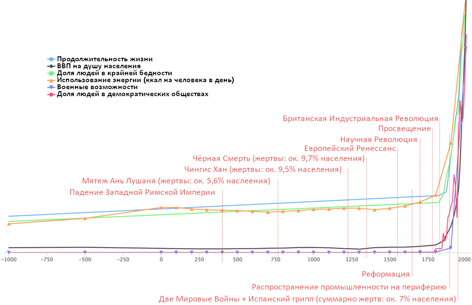 Крупные и долгосрочные изменения мира случаются нечасто. Эвристика «ничего никогда не происходит»6 обычно работает прекрасно, но случаи, когда она терпит неудачу – на них-то и важнее всего обратить внимание. Весь смысл раздумий о будущем – предвосхитить что-то большое, до того, как оно всё же произойдёт, чтобы можно было подготовиться.